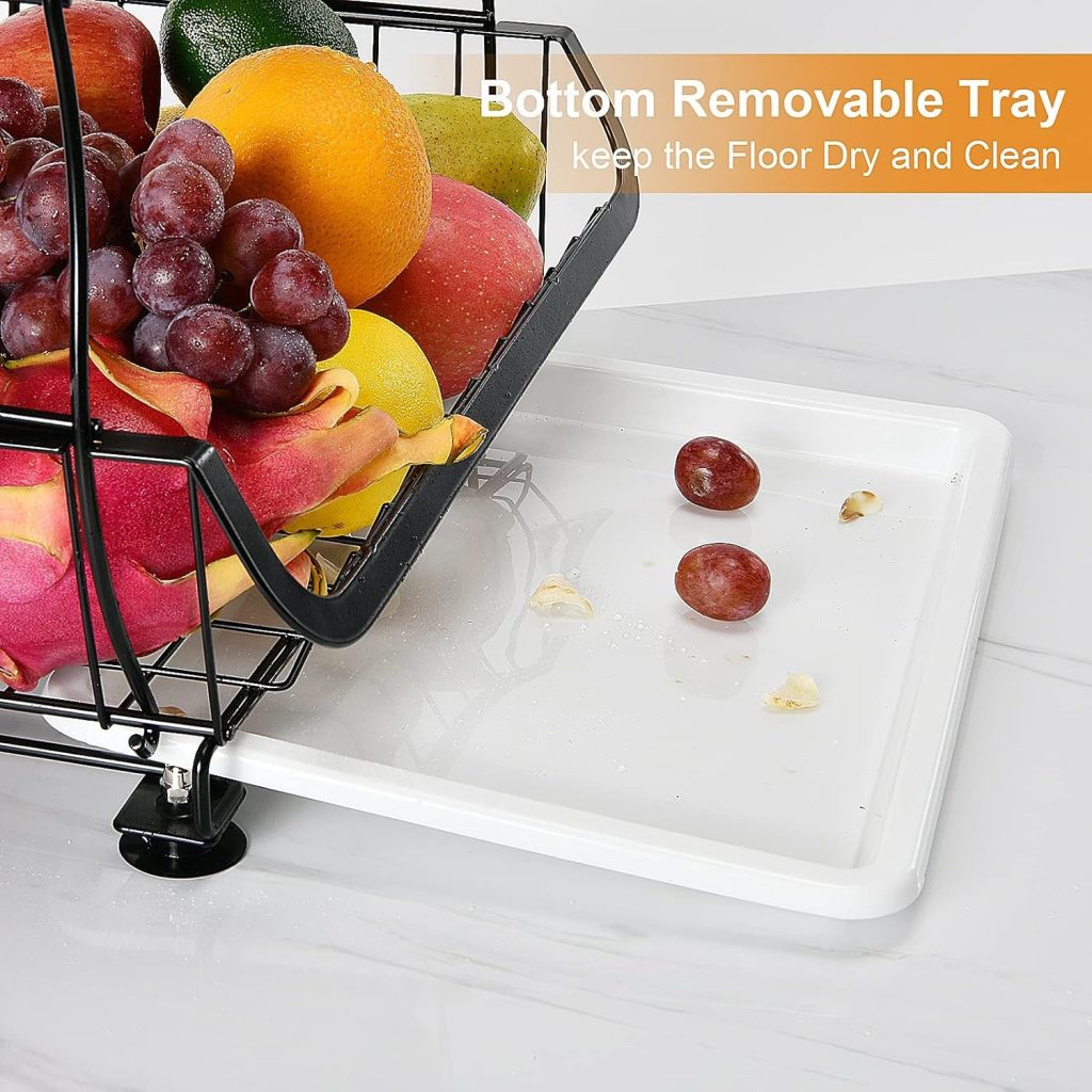 - 【Keep Fresh &Tidy】Mesh grid design allows air to circulate, ensuring that the fruits and vegetables are ventilated and have no peculiar smell. The included drain tray prevents soiling of the kitchen or floor.