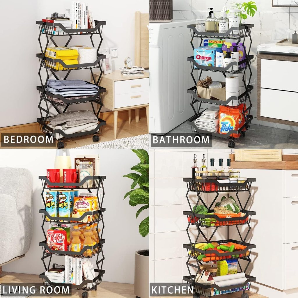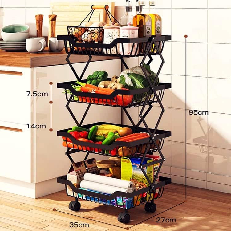 Multipurpose 4 Tier Kitchen Storage Basket Rack with Wheels