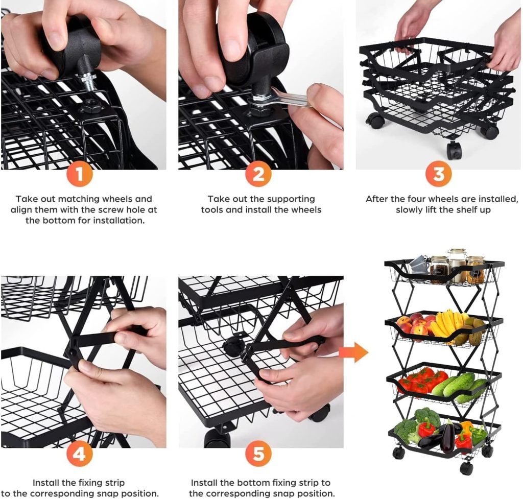 - No Assembly Required: The folding fruit and vegetable storage basket is free of installation, just needs to be easily pulled up, and it can be expanded for use. Conversely, it can be folded for storage when not in use, which is very convenient and does not take up space.