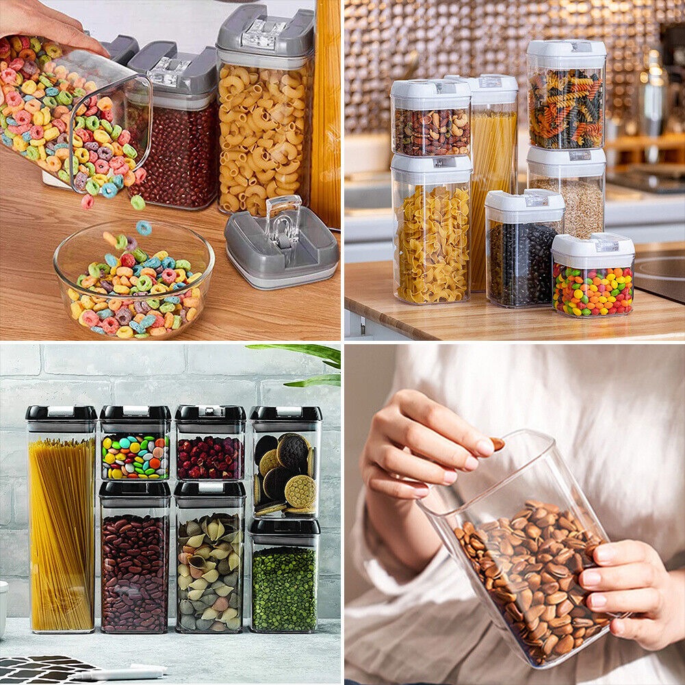 • One Set Containers- Tall Container (1.7qt ), Medium Containers (1.1qt ), Small Containers (0.7qt), Mini Containers (0.5qt). Perfect for storing flour, sugar, rice, grain, nuts, beans, snacks, pasta, coffee and tea.