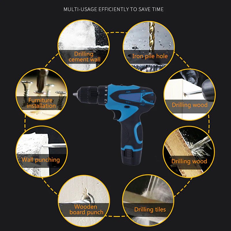 - • With its rechargeable battery, this household screwdriver drill is both convenient and portable, allowing you to take it with you wherever you go.